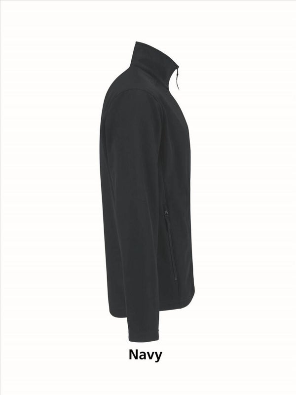 2-laags softshell jas met comfortabele pasvorm. Binnenzijde is van contrastkleurige micro fleece, behalve de kleur zwart want die heeft een zwarte binnenzijde.