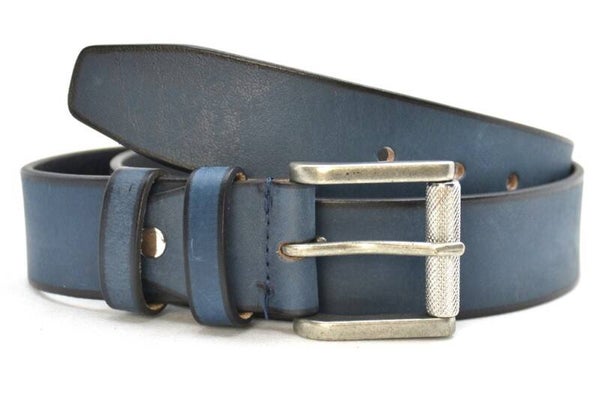 Stoere riem gemaakt van plantaardig gelooid leer voor heren. Deze riem is van echt leer in een mooie cognac kleur en airbrush zijkanten. afgewerkt met een stoere rolgesp.